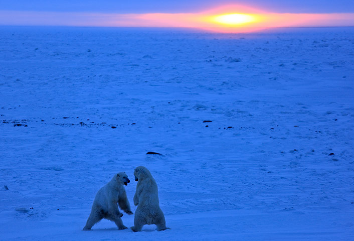 Yeah, but even images of adult polar bears playing with tires and such are pretty adorable. Pictures of them bludgeoning a seal or fighting other bears or collapsing from exhaustion after swimming too far because there’s no ice… not so much.