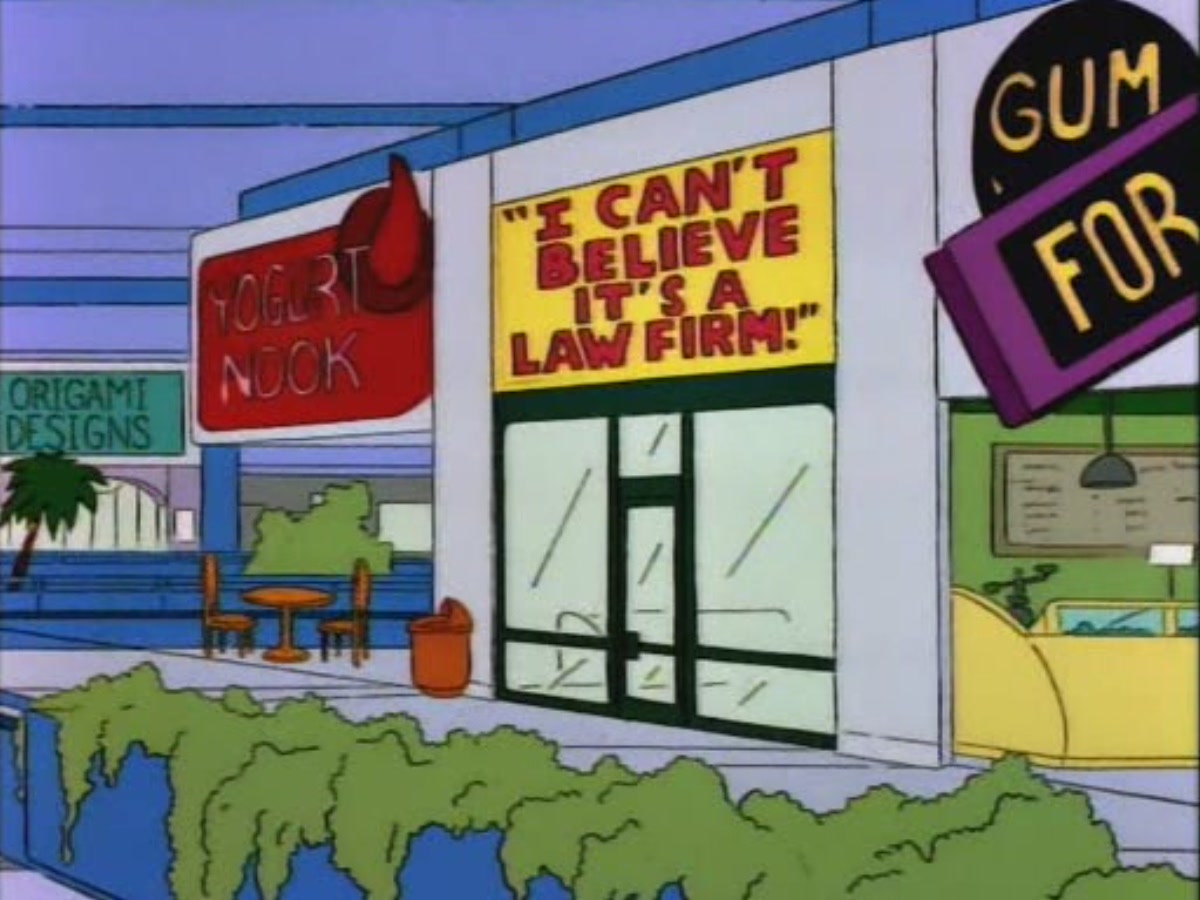 “Lionel Hutz, court-appointed attorney. I’ll be defending you on the charge of… Murder One! Wow! Even if I lose, I’ll be famous!”