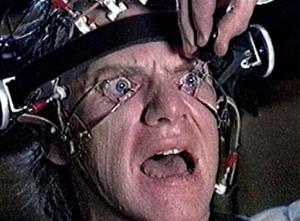The famous scene from A Clockwork Orange, in which Alex tries to stay awake to look after the baby.