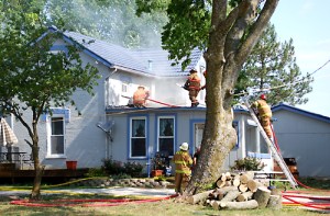 The patriotic residents of a house across the street had decided to dedicate the whole day to celebrating freedom.  It was around 2:00pm, while one of the stalwart residents was showing a young child how to hold a lit bottle-rocket when, somehow, one of their rockets landed in the dry brush of the 90-year-old woman’s house next door, and a fire started! Well, when Mrs. Byronic and I went over to put the fire out, these selfless citizens joined in with a cereal bowl full of water, and then by watching us.