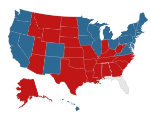 For much prettier election maps, try this link. It’s for 2008, but it gets the idea across. http://www-personal.umich.edu/~mejn/election/2008/