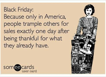 So true! I hate Black Friday with a fiery passion that burns deep in my soul. I work in retail, so it only adds to the fury. Luckily this year I was off and happily bought nothing!