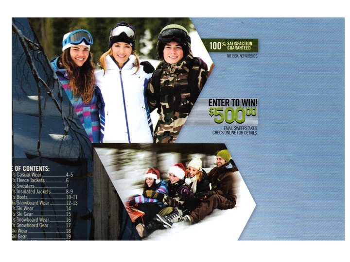 I really don’t understand the whole catalogue hoarding thought process. The pictures are great and your fake family are really a good-looking brood. The photo with the little arrow pointing to the goggles gave me a chuckle. It reminded me of those photos you see in motorcycle magazines where the half naked girl is spread eagle on a bike and then there is the little arrow to snap you back to reality..”you’re here to shop for a bike.” You’re officially …. a lure or snow bait.