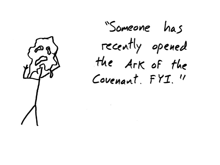 Man, I wish I had known the “Ark of the Covenant” has just been opened non-verbal expression yesterday, because that would have come in handy. Now it’s too late.