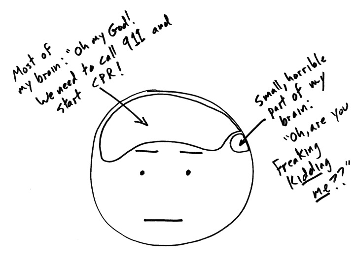 In the interest of total honesty, I ask that you reconsider the brain ratios shown in the “response to crisis” panel. C’mon – you can tell us. Because only decades of being concerned with what other people would think of me, would have kept me from shouting the pea-sized brain response.