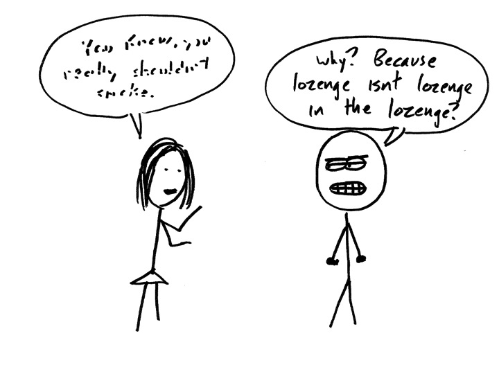 DESPITE the fact that you didn’t get your butt kicked, I still loved this. “Lozenge…lozenge…lozenge…” Ha!