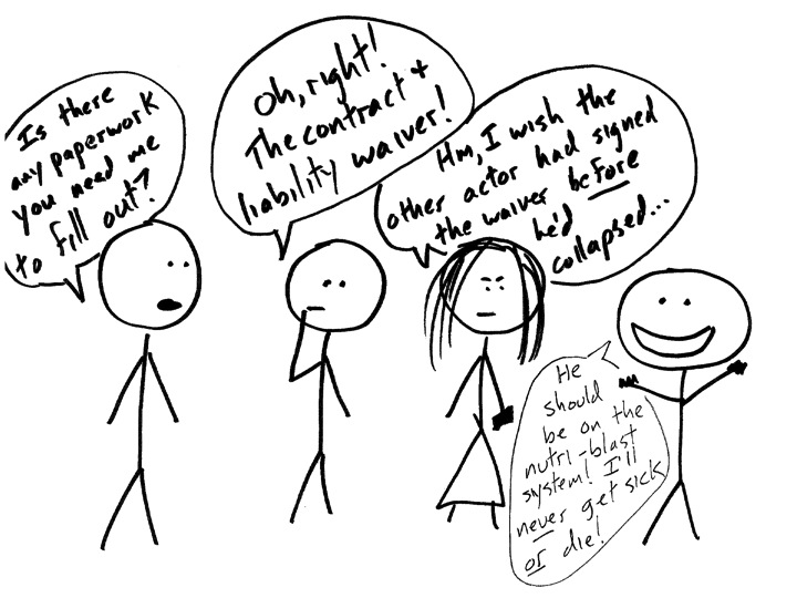 I believe you should be compensated not only for your obviously stellar acting skills, but for your services as a medical professional during that medical emergency. That’s at least like five more bucks than originally promised, I assume.